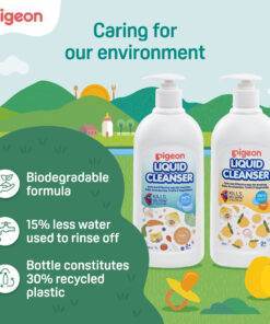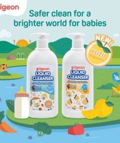 Singapore’s No.1 Baby Liquid Cleanser is now also available in refreshing Yuzu fragrance! Made with 100% Food Grade ingredients, Pigeon Liquid Cleanser is the safe and effective way to wash baby bottles and accessories as well as fruits and vegetables.The easy rinse properties uses less water to rinse off and leaves no soapy residues behind. With an improved formula and environmentally-friendly packaging, we have taken a step further in our commitment towards creating a baby-friendly world. Dermatologically tested, gentle on skin.