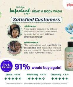 Natural Botanical Baby Head & Body Wash thoroughly cleanses from head to toe, nourishing its scalp and hair while maintaining smoothness of baby’s skin. Safe for newborns.