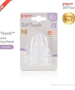 Backed by over 60 years of research into baby’s natural sucking behaviour, the new upgraded Pigeon SofTouch nipples launched in 2022 come with research-based latch-on line for appropriate latching, and even softer nipple that is closest to mother’s breast. Developed to functionally mimic the feeding movements that babies perform when drinking from mum’s breasts, SofTouch Nursing Bottles are crafted to especially support breastfeeding mums to feed their baby from both breast and bottle seamlessly. Anti-colic with advanced air vent system that minimises swallowed air as baby drinks. Available size line-up from SS to LLL with flow volume matched to baby’s development. Have more peace of mind and enjoy the treasured moments with your little one! 2pcs of size L, for 6+ months. The opening of the nipple is slightly bigger Y-cut than M size nipple to allow more milk to drip out. Milk drips out when there’s pressure on the nipple. This helps babies to control the flow of milk and train their sucking ability as babies at this age have developed a stronger jaw muscle