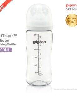 Backed by over 60 years of research into baby’s natural sucking behaviour, the new upgraded Pigeon SofTouch Nursing Bottles launched in 2022 come with research-based latch-on line for appropriate latching, and even softer nipple that is closest to mother’s breast. Developed to functionally mimic the feeding movements that babies perform when drinking from mum’s breasts, SofTouch Nursing Bottles are crafted to especially support breastfeeding mums to feed their baby from both breast and bottle seamlessly. Anti-colic with advanced air vent system that minimises swallowed air as baby drinks. Have more peace of mind and enjoy the treasured moments with your little one! Made from T-Ester, innovative material exclusive to Pigeon, that has excellent glass-like clarity for better visibility, as well as high resistance to UV degradation, making it UV sterilizer friendly*. It is the clear choice for your quality feeding time. The opening of the nipple is round-cut which allows milk to flow out consistently and gradually. Newborns have yet to develop any jaw muscles, thus the nipple is designed to support their sucking ability at this age. *For bottles only. Available in 2 sizes – 200ml, 300ml. Compatible with SofTouch™ nipple. For 0+ months and above. 200ml comes with SS size nipple specially designed for newborn baby. For 3+ months and above. 300ml comes with M size nipple that has a Y-cut opening on the nipple.
