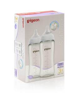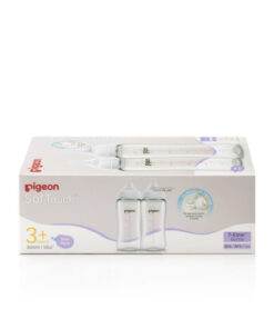 Backed by over 60 years of research into baby’s natural sucking behaviour, the new upgraded Pigeon SofTouch Nursing Bottles launched in 2022 come with research-based latch-on line for appropriate latching, and even softer nipple that is closest to mother’s breast. Developed to functionally mimic the feeding movements that babies perform when drinking from mum’s breasts, SofTouch Nursing Bottles are crafted to especially support breastfeeding mums to feed their baby from both breast and bottle seamlessly. Anti-colic with advanced air vent system that minimises swallowed air as baby drinks. Have more peace of mind and enjoy the treasured moments with your little one! Made from T-Ester, innovative material exclusive to Pigeon, that has excellent glass-like clarity for better visibility, as well as high resistance to UV degradation, making it UV sterilizer-friendly*. It is the clear choice for your quality feeding time. The opening of the nipple is round-cut which allows milk to flow out consistently and gradually. Newborns have yet to develop any jaw muscles, thus the nipple is designed to support their sucking ability at this age. *For bottles only. Available in 2 sizes – 200ml, 300ml. Compatible with SofTouch™ nipple. For 0+ months and above. 200ml comes with SS size nipple specially designed for newborn baby. For 3+ months and above. 300ml comes with M size nipple that has a Y-cut opening on the nipple.