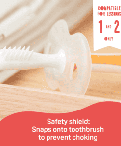 - Tongue cleaner removes residual dirt on baby’s tongue – Includes a safety shield that prevents choking (Lessons 1 and 2 only)