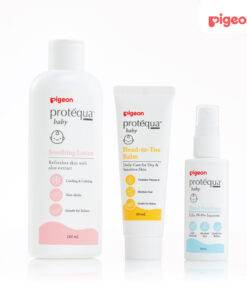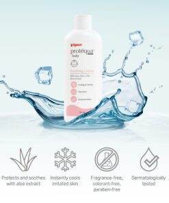 A comfortable baby is a happy baby. Keep your child’s skin cool and feeling fresh whether indoors or under the sun, with our lightweight and fast-absorbing aloe extract Soothing Lotion that refreshes and nourishes all day.