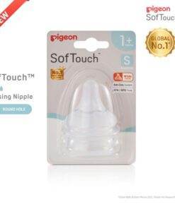 Backed by over 60 years of research into baby’s natural sucking behaviour, the new upgraded Pigeon SofTouch nipples launched in 2022 come with research-based latch-on line for appropriate latching, and even softer nipple that is closest to mother’s breast. Developed to functionally mimic the feeding movements that babies perform when drinking from mum’s breasts, SofTouch Nursing Bottles are crafted to especially support breastfeeding mums to feed their baby from both breast and bottle seamlessly. Anti-colic with advanced air vent system that minimises swallowed air as baby drinks. Available size line-up from SS to LLL with flow volume matched to baby’s development. Have more peace of mind and enjoy the treasured moments with your little one! 2pcs of size S, for 1+ months.The opening of the nipple is round-cut which allows milk to drip out consistently and gradually with minimal sucking. Newborns have yet to develop any jaw muscles, thus the nipple is designed to support their sucking ability at this age.