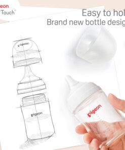 Backed by over 60 years of research into baby’s natural sucking behaviour, the new upgraded Pigeon SofTouch Nursing Bottles launched in 2022 come with research-based latch-on line for appropriate latching, and even softer nipple that is closest to mother’s breast. Developed to functionally mimic the feeding movements that babies perform when drinking from mum’s breasts, SofTouch Nursing Bottles are crafted to especially support breastfeeding mums to feed their baby from both breast and bottle seamlessly. Anti-colic with advanced air vent system that minimises swallowed air as baby drinks. Have more peace of mind and enjoy the treasured moments with your little one! Made with PP material (Polypropylene), this range is durable and light-weight. For 3+ months. Comes with M size nipple that has a Y-cut opening on the nipple. The opening of the nipple is round-cut which allows milk to flow out consistently and gradually. Newborns have yet to develop any jaw muscles, thus the nipple is designed to support their sucking ability at this age.