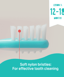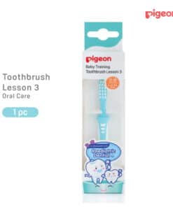 For babies from 12-18 months or when most teeth are developed Co-developed with a leading paediatric dentist, Pigeon’s Training Toothbrush Lesson 3 is designed to introduce your baby to their first real toothbrush. The soft, rounded bristle ends gently cleans and removes food particles.