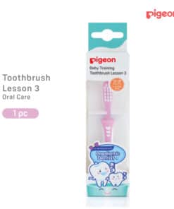 For babies from 12-18 months or when most teeth are developed Co-developed with a leading paediatric dentist, Pigeon’s Training Toothbrush Lesson 3 is designed to introduce your baby to their first real toothbrush. The soft, rounded bristle ends gently cleans and removes food particles.